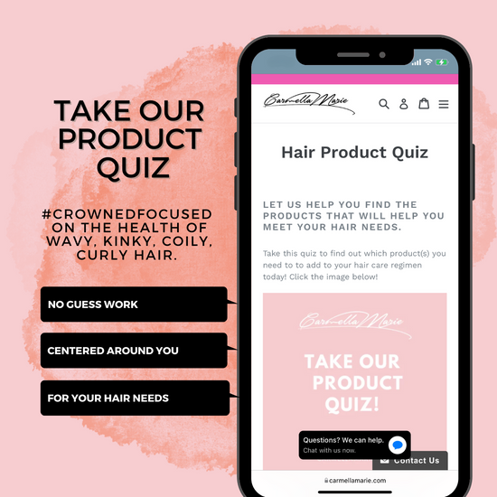 We’ve made it easy to find the perfect Carmella Marie products for your hair! Take our quiz to get personalized product recommendations, then simply add everything you need to your cart. Still need more help? Feel free to email us atinfo@carmellamarie.comfor a personal consultation!